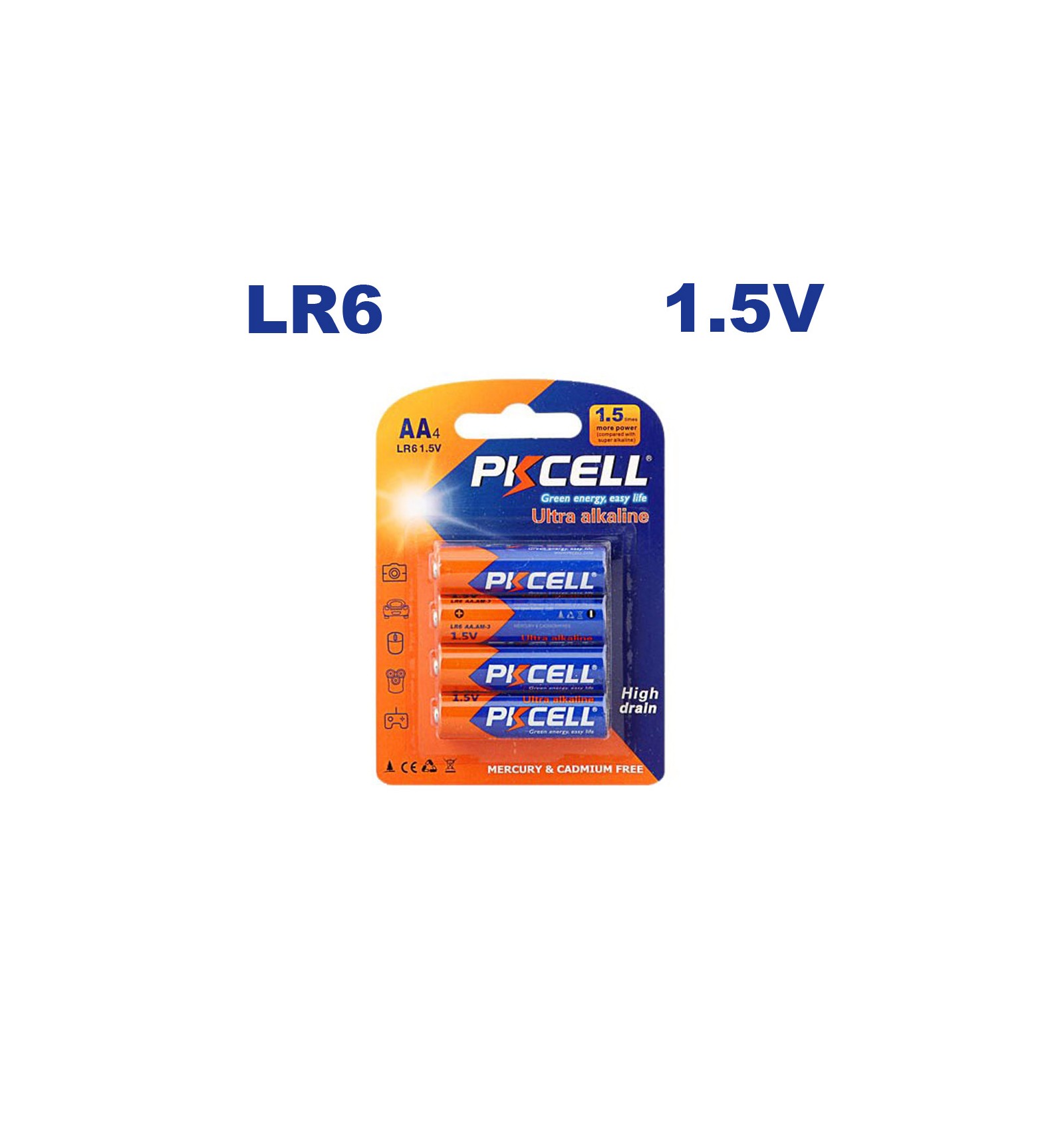 El Batería AA LR6 PKCell alcalina Ultra última generación para el uso diario y satisface las necesidades de grandes consumidores de dispositivos de energía como la juguetes, dispositivos de ordenador, CD jugadores, reloj despertador, equipo ratón y linternas.