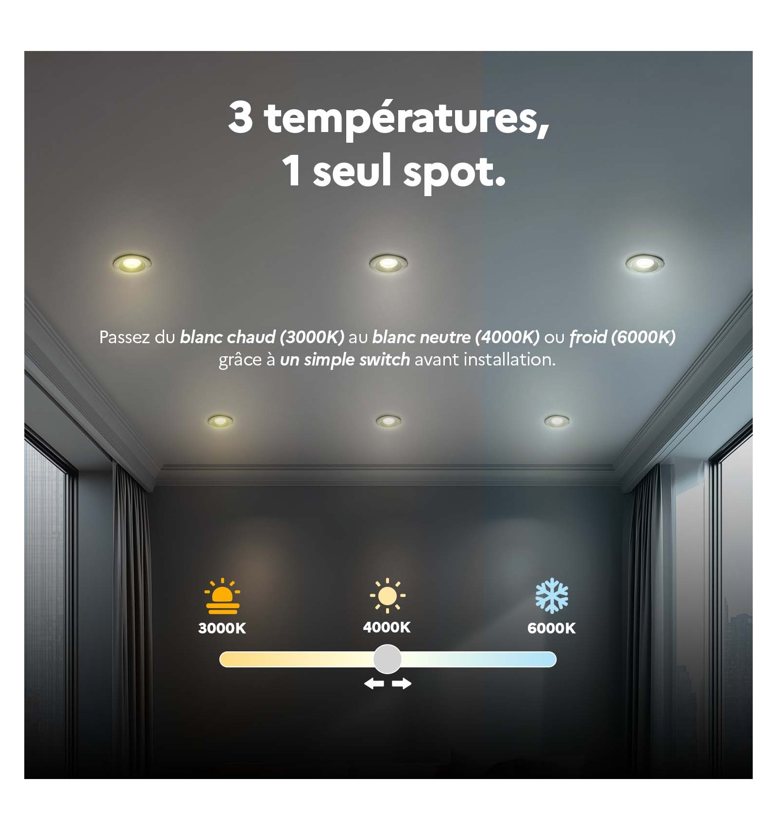 Adaptez l’ambiance à chaque pièce grâce à un sélecteur 3CCT placé à l’arrière :