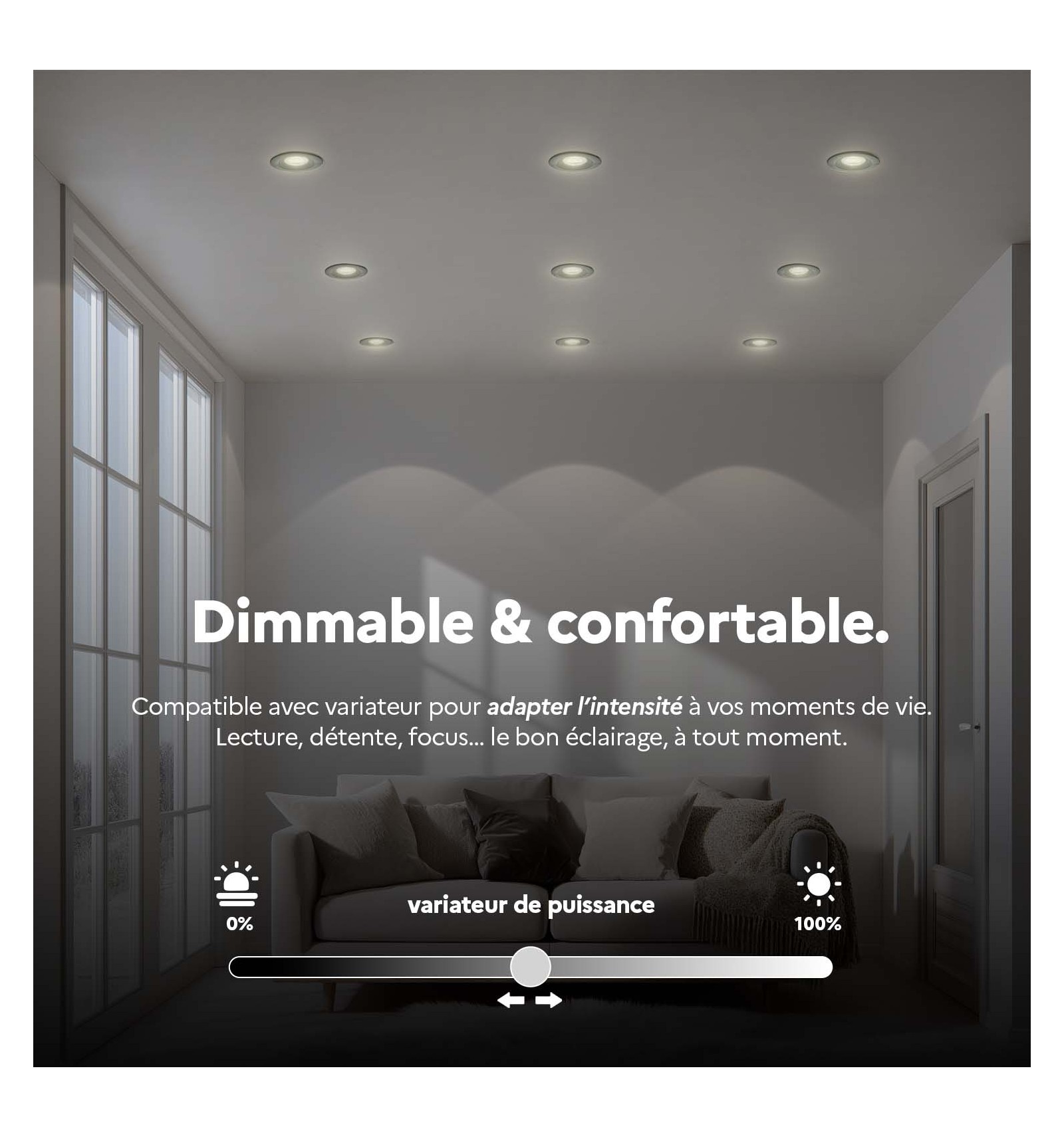 Compatible avec variateur de puissance, il vous permet d’ajuster l’intensité lumineuse selon le moment. Ambiance tamisée pour la détente, ou éclat maximal pour la concentration.