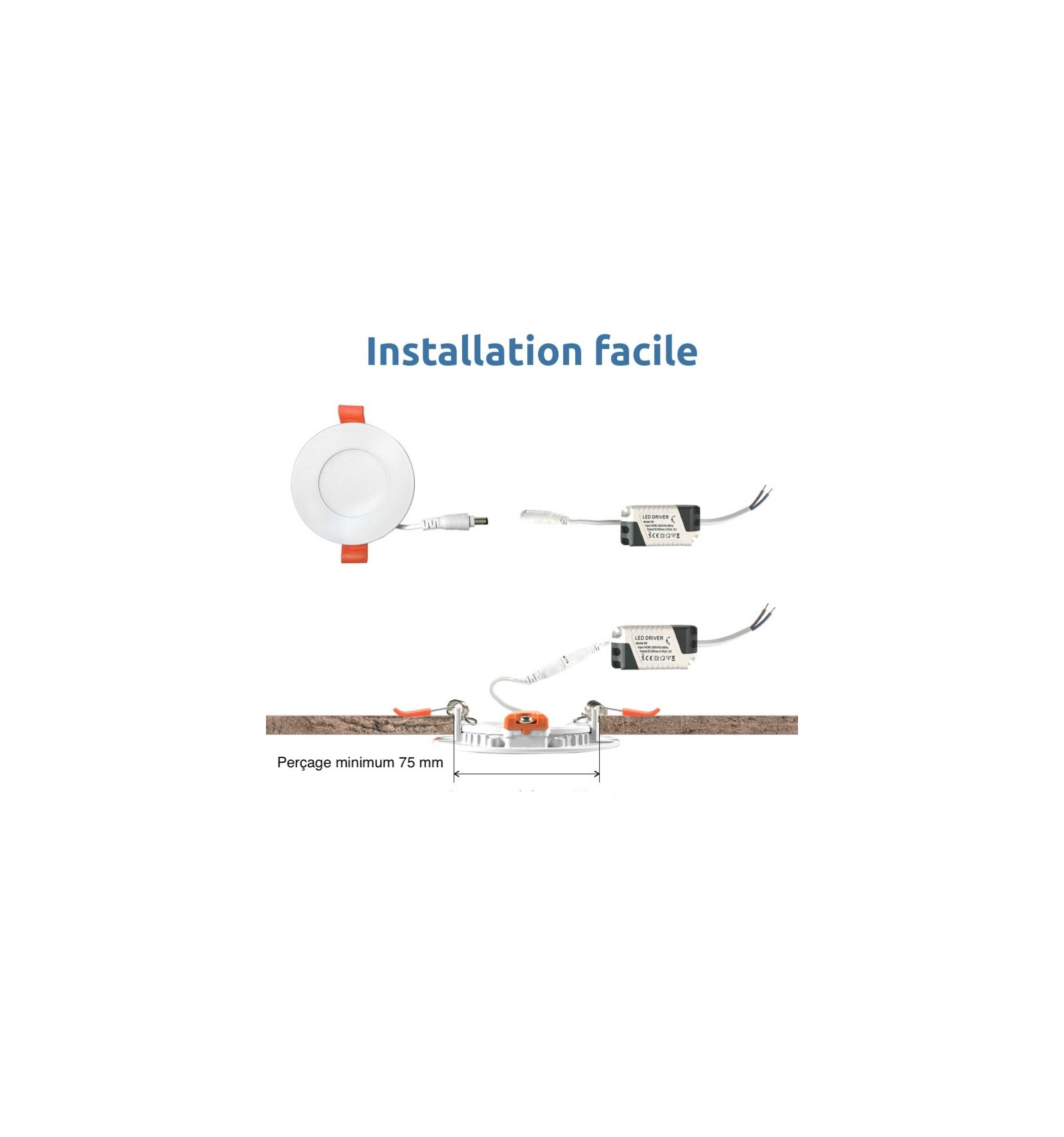 Lot de 10 Spots Led Encastrable 3W Extra-Plat LED Blanc Froid 6000k design slim ultra fin , plafonnier Led de forme ronde adaptée pour bureau, commerce, cabinet, magasin,habitation ect...Basse consommation d'énergie. Les produits LED consomment une puissance qui est environ 10 fois moindre que celle consommée par les spots ordinaires. Longue vie, produit écologique.
