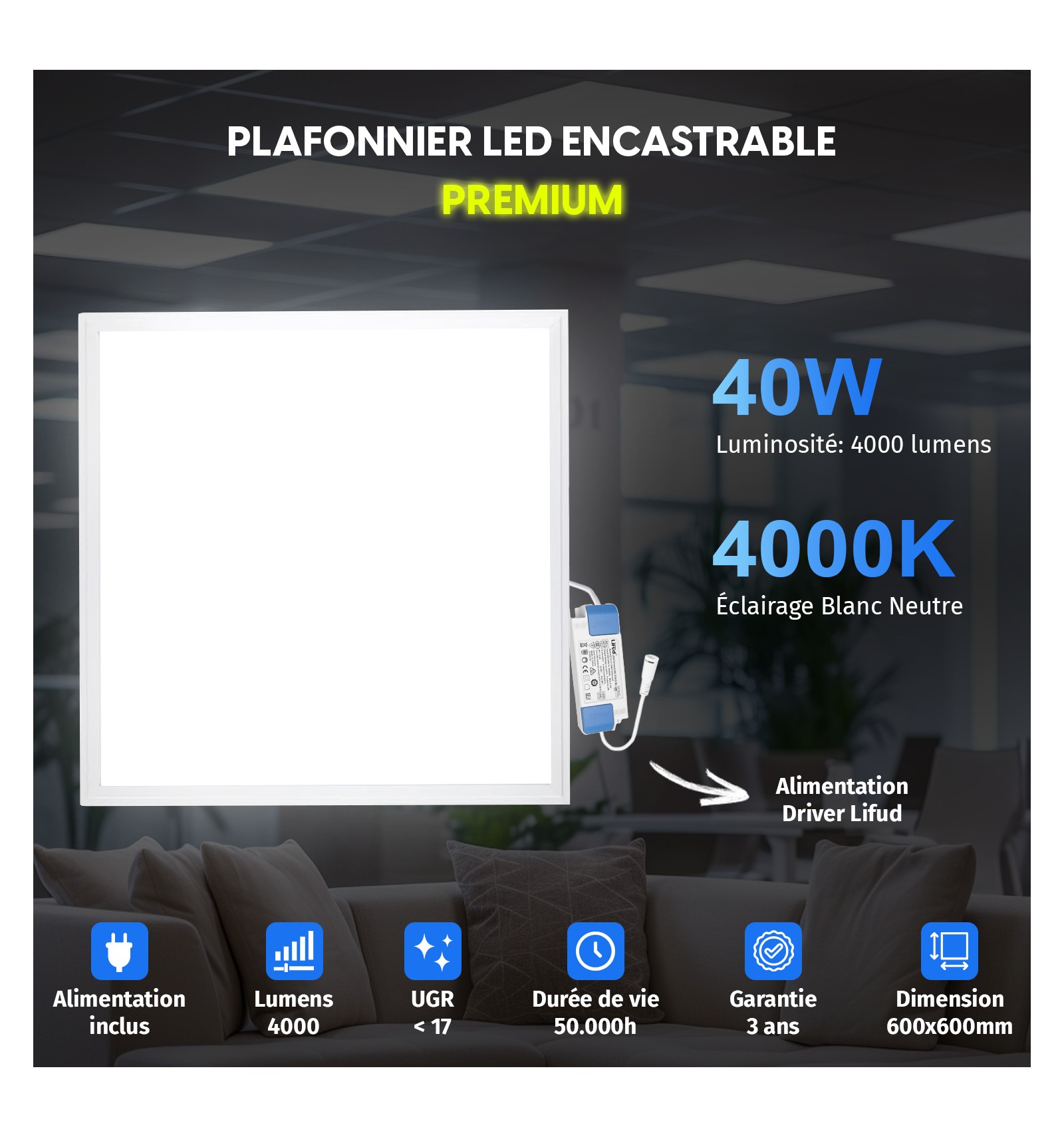 Confezione da 6 lastre in bianco freddo 6000K led 3600 lumen per solo 40 watt di consumo. può essere utilizzato per illuminazione di uffici, negozi illuminazione, illuminazione di locali industriali, illuminazione di Alberghi, caffetterie, ristoranti, ecc.La lastra ha condotto consuma pochissima elettricità e offre una grande qualite.